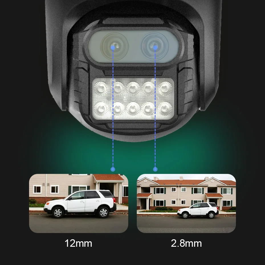 2,8 мм + 12 мм объектив с двумя объективами, чтобы посмотреть больше вариантов больших расстояниях.