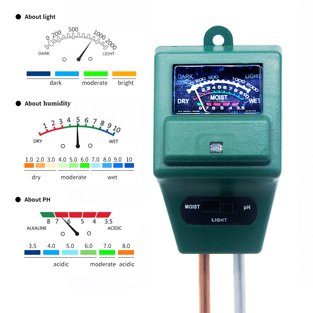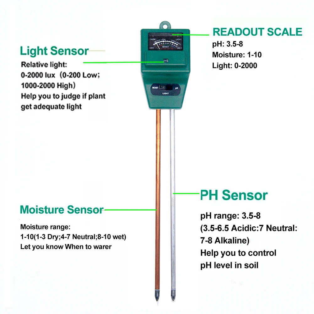 Этот 3-в-1 влажности почвы метр является идеальным почвы тест-наборы для ухода за растениями, для дома и сада, лужайка, фермы.