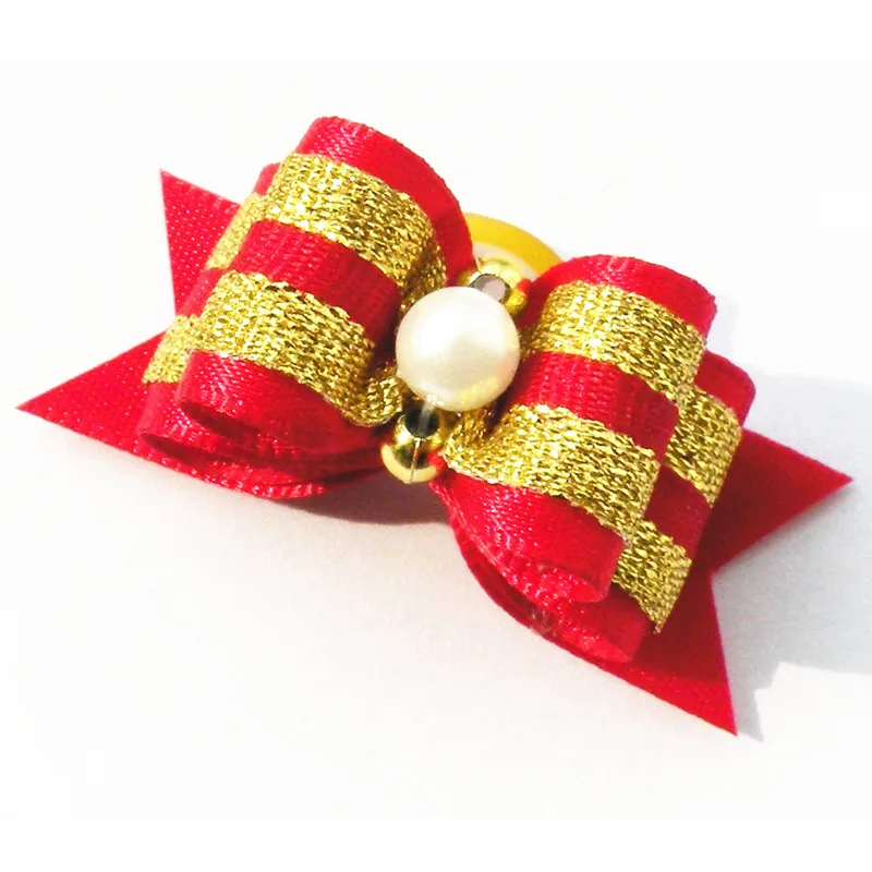 100% Новый бренд Материал: лента, стразы Вес: 4 г/шт.Размер: около 3-4 см длинаЦвет: красный, зеленый Костюм для рождественских праздников Посылка включает в себя: 100 шт. бантов для волос домашних животных Дисплей изображения: