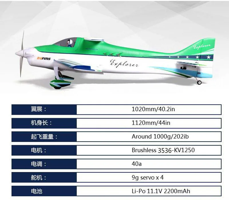 Год в производстве! Представляем новый FMS F3A Explorer, новейшее создание в FMS аэробной линейке моделей. С его элегантными и изящными линиями, превосходными летящими качествами, F3A является обязательным для аэробного пилота, чтобы добавить его ангар. Работая с RC Hobbyist по всему миру, FMS разработала этот самолет для удовлетворения всех требований к прецизионному полету, необходимых для соревнований в F3A аэробативном соревновании.