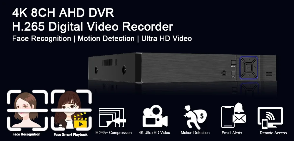 Ультра HD распознавание лица H.265 4CH 8CH 4K AHD DVR гибридный видеорегистратор Поддержка 8MP 5MP 4MP 2MP AHD IP камера CCTV домашняя система безопасности Onvif