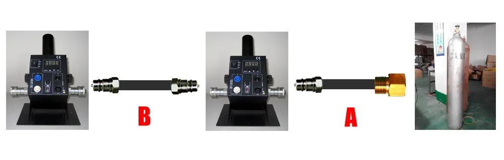 2: Если подключить 2 машины вместе. Мы предлагаем A и B газовый шланг, оба газовых шланга длиной 6 м.