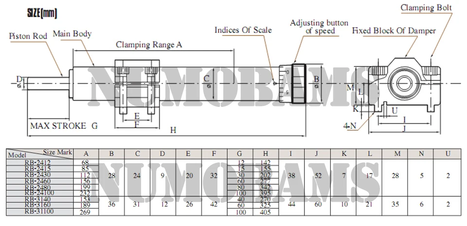 Поршневой стержень вернется в исходное положение автоматически при разрядке нагрузки поршневого штока гидравлического демпфера модели RB.