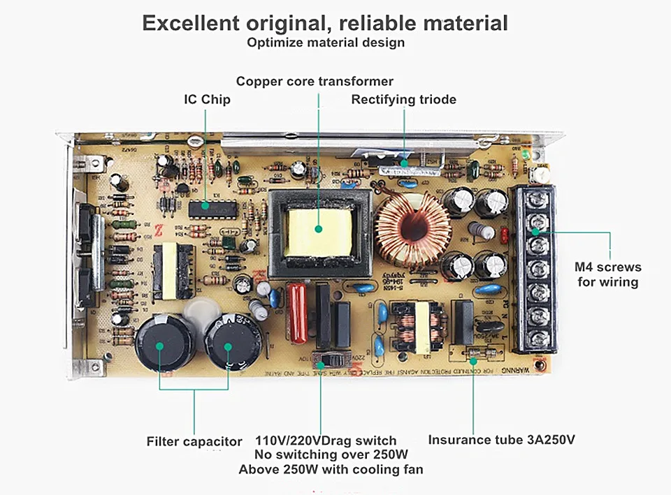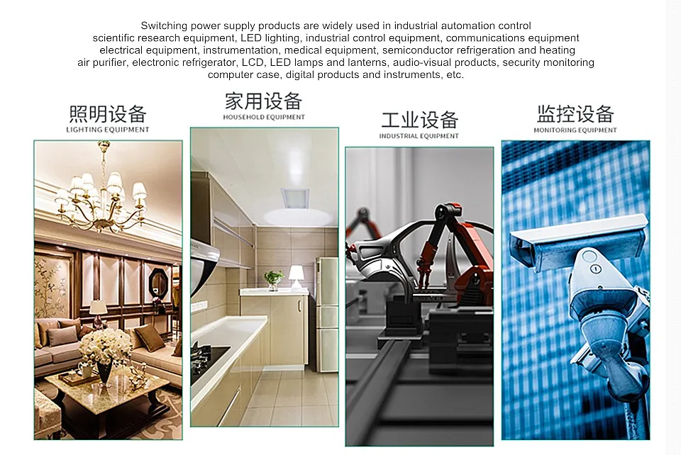 Импульсный источник питания широко используется в промышленном автоматическом управлении, научно-исследовательском оборудовании, светодиодный осветительный прибор, промышленное контрольное оборудование, коммуникационное оборудование, электрическое оборудование, приборы, медицинское оборудование, полупроводниковое охлаждение и нагрев, очиститель воздуха, электронный холодильник, ЖК-дисплей, светодиодный светильник и фонари, аудиовизуальные продукты, мониторинг безопасности, Чехол для компьютера, цифровые продукты и инструменты и т. Д.