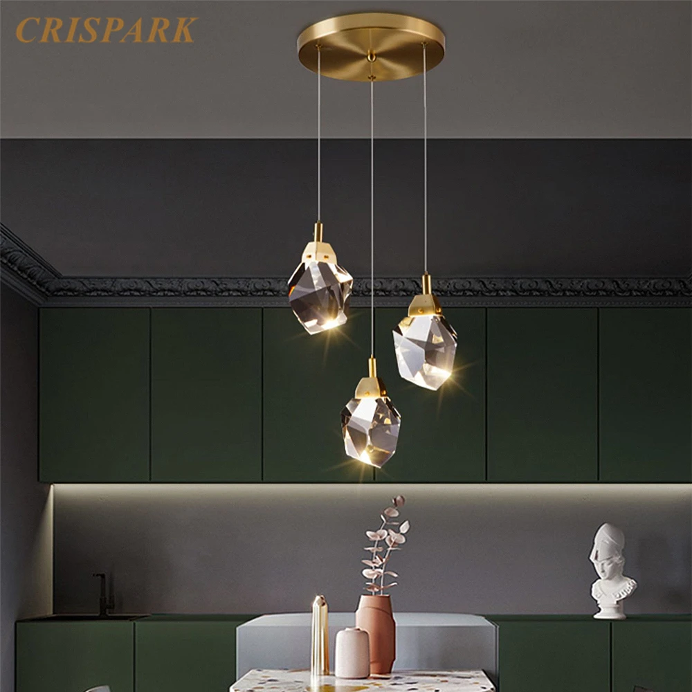 Современный нерегулярный Хрустальный люстра светильник светодиодный латунный колпачок скандинавский подвесной светильник арт-деко домашняя лестница кухня