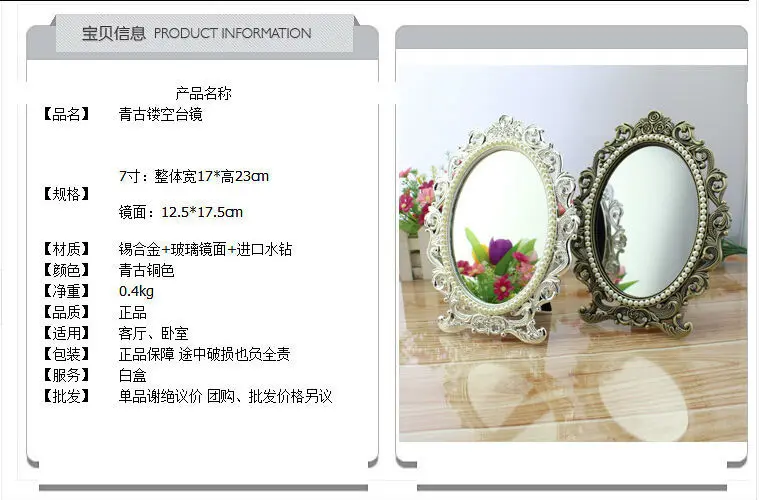 Материал: оправа из цинкового сплава + стеклянное зеркало