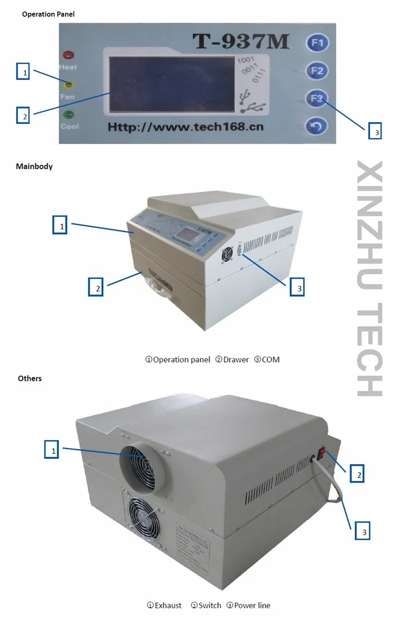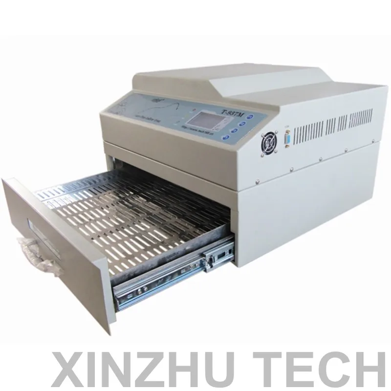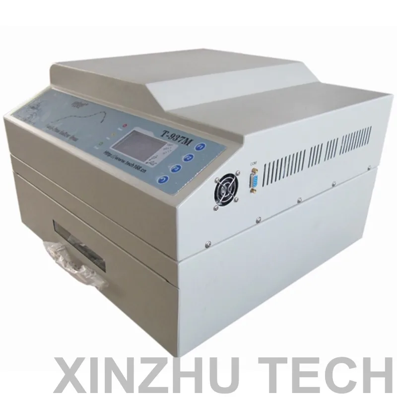 LeadFREE Relow Oven T-937M-это микропроцессорная управляемая печь с оплавлением. Он используется для эффективной пайки различных SMD и BGA компонентов. Весь процесс пайки может быть завершен автоматически, и он очень прост в использовании. В этой машине используется Мощное инфракрасное излучение и циркуляция потока горячего воздуха, поэтому температура остается очень точной и равномерно распределена.
