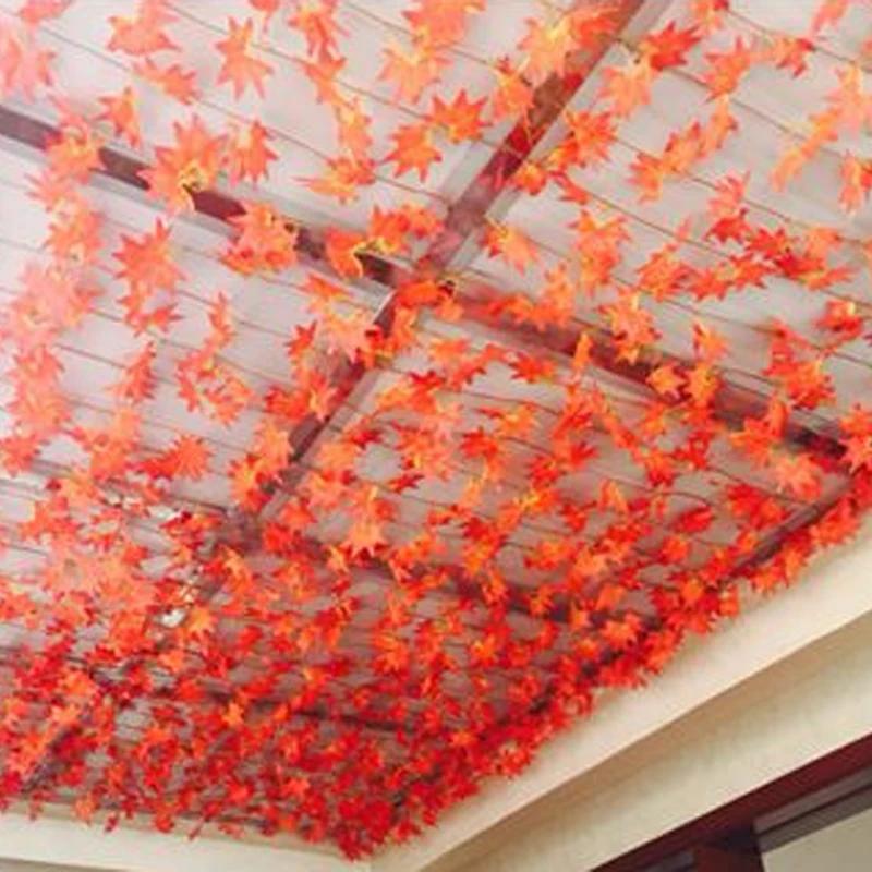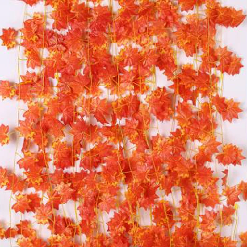 Гирлянда из искусственных кленовых листьев, хорошо сделанная и яркая, выглядит как настоящая