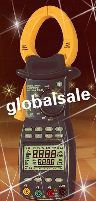 HYELEC MS2203 высокой чувствительностью 3 фазы ЖК-дисплей Профессиональный клещи Мощность коррекция коэффициента USB истинного среднеквадратичного значения 4 провода тестирования