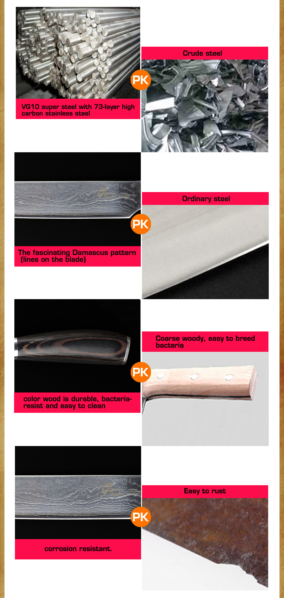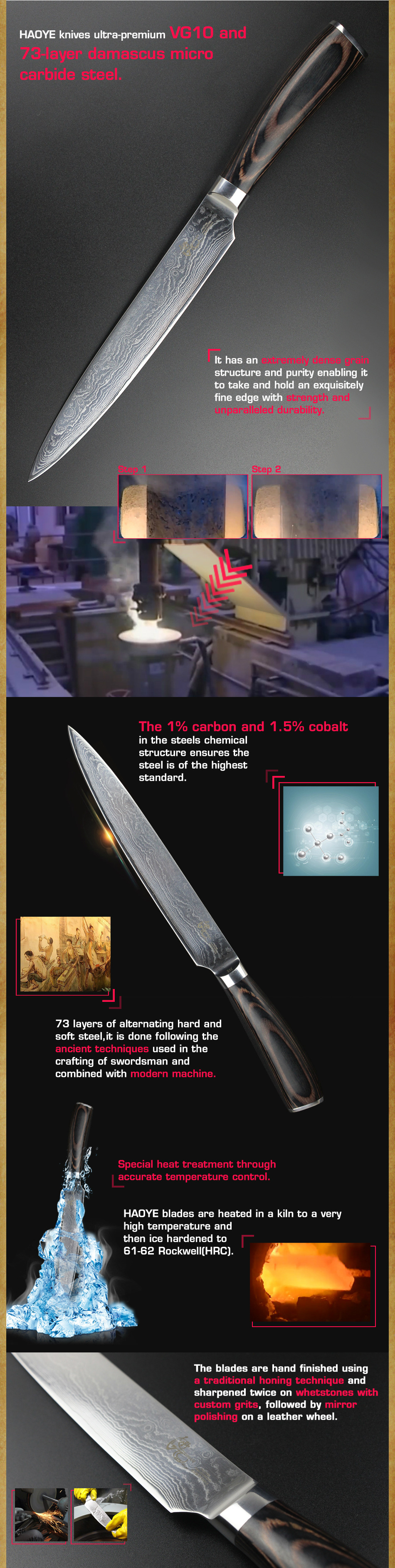 Промыслы:73 слоя чередующейся твердой и мягкой стали, HAOYE лезвия нагреваются