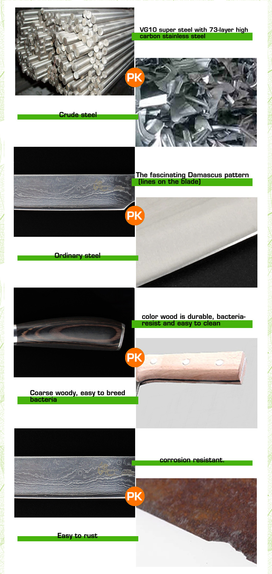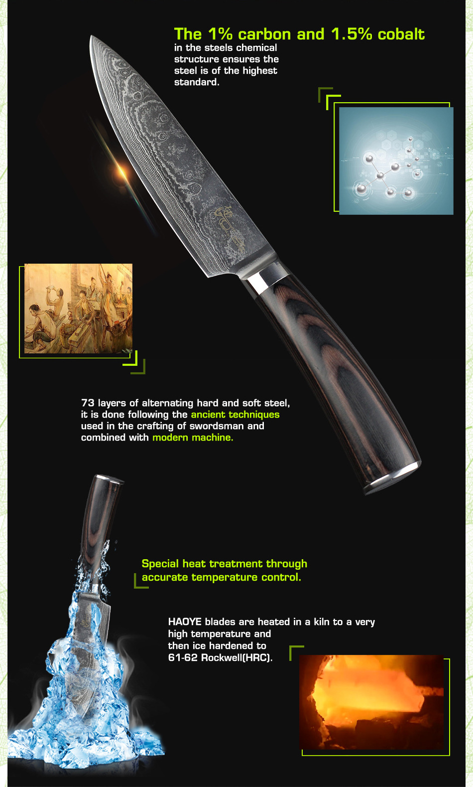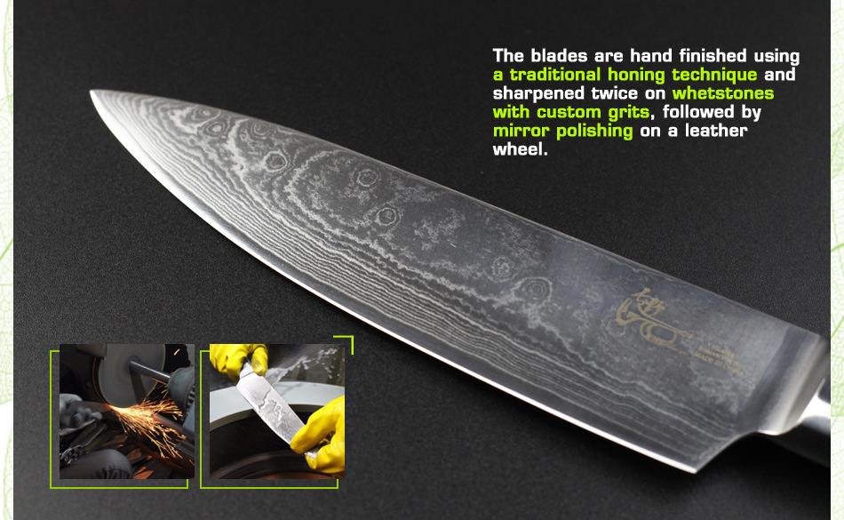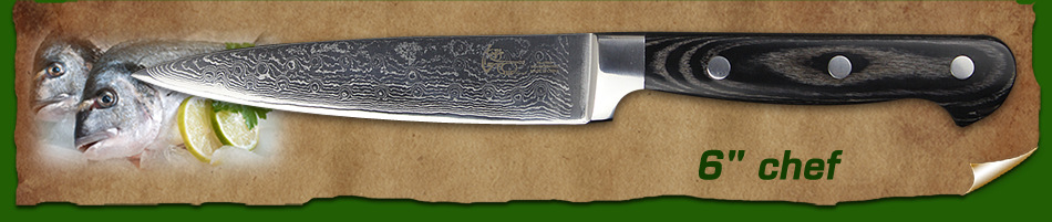 Продукт(6 "дюймов дамасский поварской нож.) Завораживающий дамасский узор (линии На лезвиях «цунами-роза») Произведите впечатление на гостей с вашимВыглядит потрясающе. Символизирует качество ножа. Из высококачественных материалов(VG10 и 73-слой из дамасской стали микро Карбид сталь) ЭкстримРезкостьИ с длиннымиПрочность и долговечность. Ремесленное производство(Специальная Термическая обработка через точный контроль температуры) Имеет небывалую твердость62 по шкале Роквелла (Высокая отключающая способность) . Не становясь ломкими и устойчивыми к коррозии. Деревянная ручка(Деликатная и экологическая защита) Гарантируют безопасную иУдобныйСцепление! Прочный иNon-slip. Подарочная коробка(Черные коробки из гофрокартона). элегантный внешний вид, влагостойкий и ударопрочный.