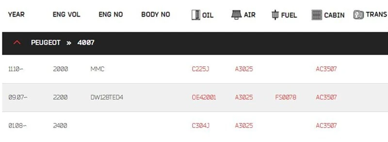 OEM No.: 1745604, 1745605, 1748479, 1748480, 08R79-S04-000, 08R79-S04-A00, 08R79-S05-B00, 08R79-S2H-E01, 87139-30100, 08R79-S3Y-E00, 80290-ST3-E01, 80291-ST3-505, 7803A004, 80291-ST3-E01, 7803A005, 7803A043, 7803A109, MZ600170, 1N03-61-148, 27274 WD000, 27277-4M400, 27275-0N025, 27275-1W700, 27277 4N025, 27277-4M425, 27277-9W125, 27277-AG025, 27891-BM400, 27891-BM401, 27891-BM402, 27891-BM410, 999M1-VP001, 999M1-VP051, AY680-NS002, AY684-NS001, AY685-NS001, B720-05-U100, B7200 A0125, B7200-5M000, B7200-5M500, B7200-A0025, B7200WD000, B727A-79925, 6447ZX, 87139-30100