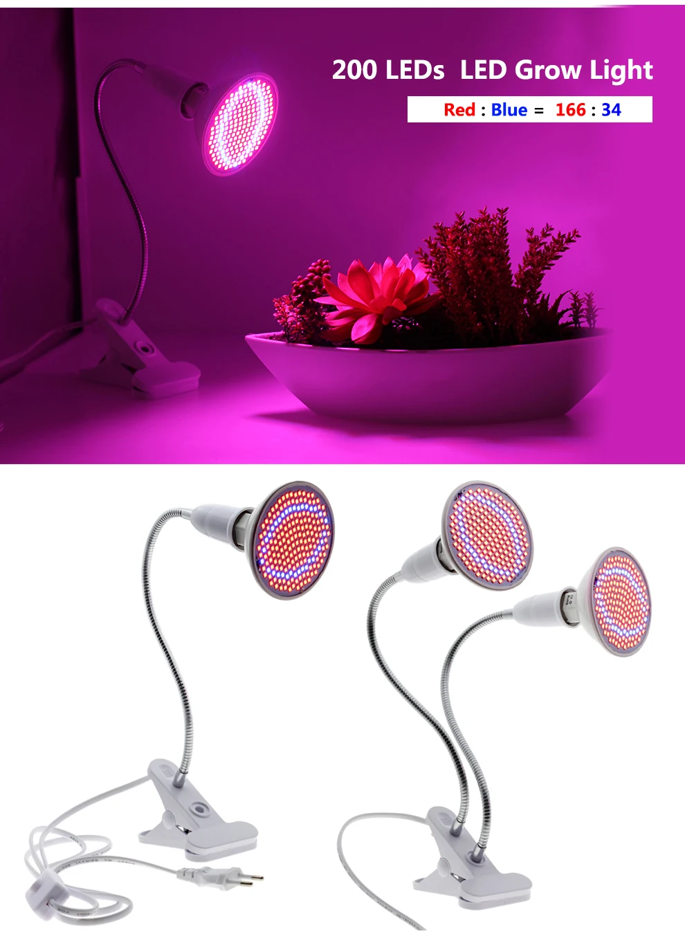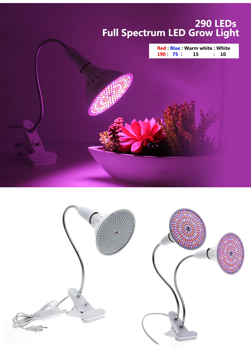 LED Grow Light полный спектр с E27 держатель лампы клип-на Фито лампы 72 светодиода 200 светодиодов 290 светодиодов для комнатных растений рост цветов