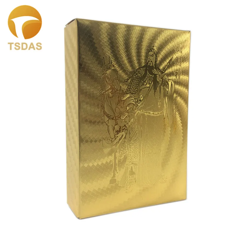 Название:Золотые игральные карты с узором Wu Fortuna (китайский Бог), Золотая фольга покер 54 шт/колода с черной деревянной коробкой