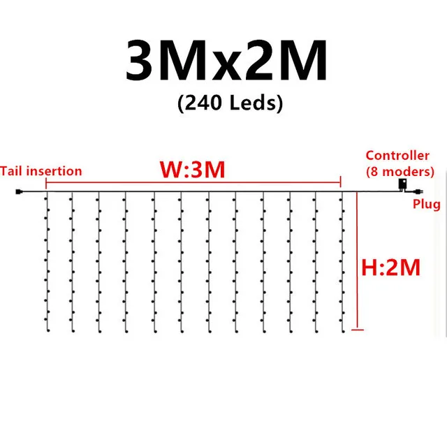 6 м X 3 м 600 Светодиодная Рождественская гирлянда для свадьбы, вечеринки, сосульки, занавески, уличные праздничные украшения для помещений