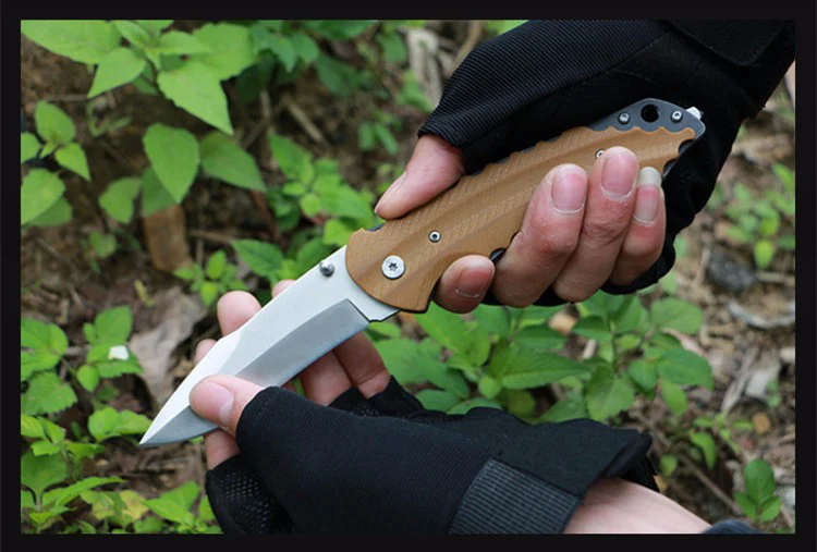 Бесплатная доставка Высокое качество складной нож выживания тактический охотничий нож коричневый/черный G10 ручка Открытый EDC инструментыПараметры продуктаТип: складной ножОбщая длина: 222 ммДлина лезвия: 92 ммДлина ручки: 130 ммШирина лезвия: 26 ммТолщина лезвия: 2,8 ммМатериал лезвия: 440Вес: 150 г (включая посылка)Твердость: 57hrcПоверхность: песочный светильникМатериал ручки: сталь + G10Другие: нитао высокого качества
