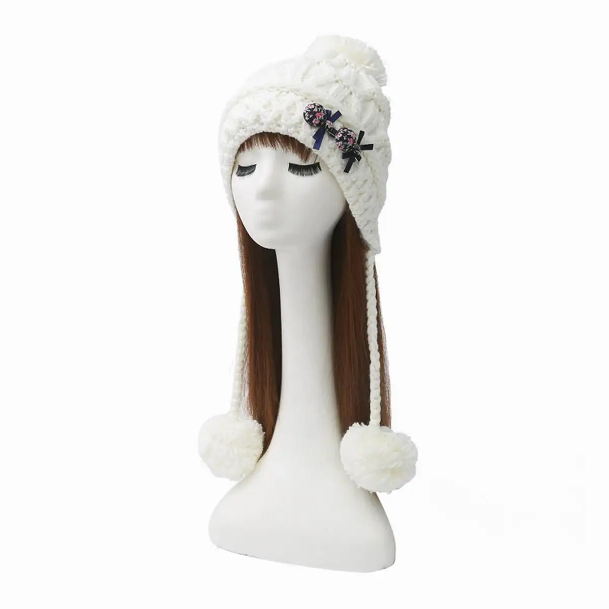 Теплые стильные женские трикотажные вязания шапочки зима помпоном hat Кепки |