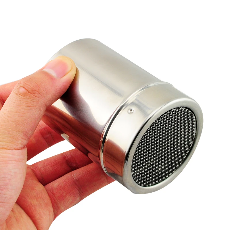 Продукт идеально подходит для встряхивания сахара на торты, шоколада на капучино или муку при выпечке.