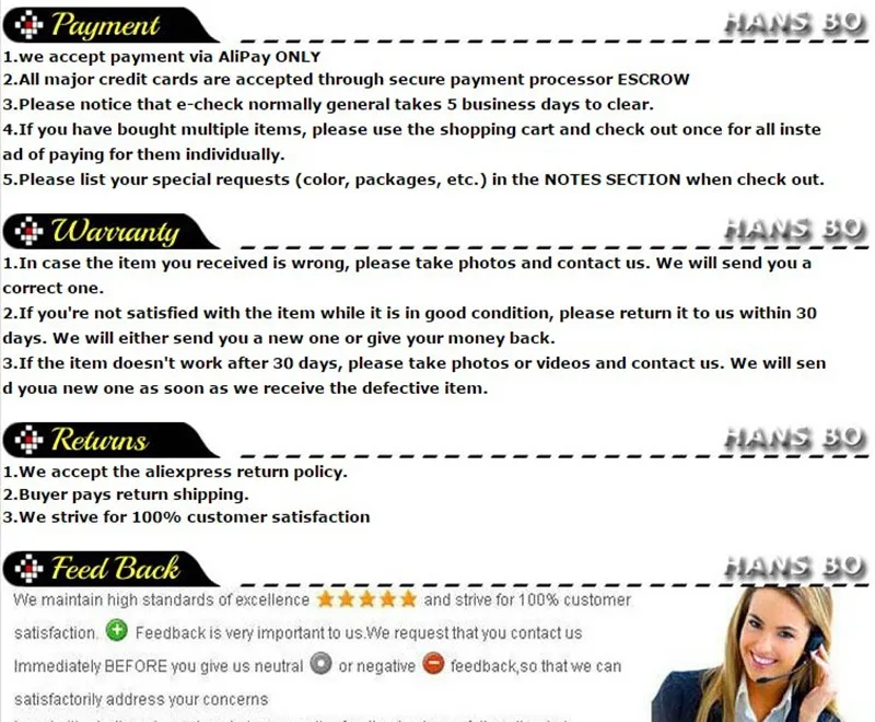 Пожалуйста, свяжитесь с нами, прежде чем открывать запрос на возврат или оставлять отрицательотзывы в! Мы решим ваши проблемы! Спасибо!