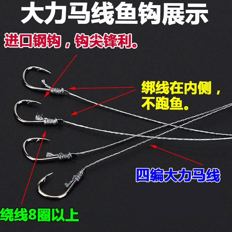 Особенности: Специальный дизайн крючок, доступен для морской рыбалки Стальная линия отличное качество изготовления, висячая приманка быстрая, удобная Высококачественная твердая нержавеющая сталь, колючая, очень острая Состоит из пяти острых проникающих крючков, увеличивающих скорость роста рыбы до крючка С возможностью захвата, можно зацепить рыбы вокруг в то же время, когда одна рыба поднимается к крюку Советы: будьте осторожны во время рыбалки крючки довольно острые Упаковка включает: 5 пар полиэтиленовых крючков/сумок