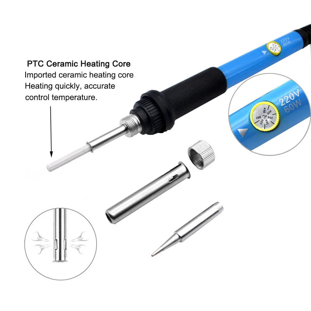 Электрический паяльник, 220 В, 60 Вт, ручная сварка, инструмент для ремонта, регулируемая температура, паяльник, 5 шт., наконечник для припоя