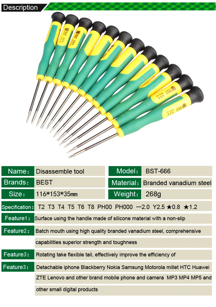 Прецизионный Набор отверток 12 в 1, BST-666, для Мобильный телефон, ПК, планшет, разборка, Ремонтный комплект, Отвертки Phillips Torx
