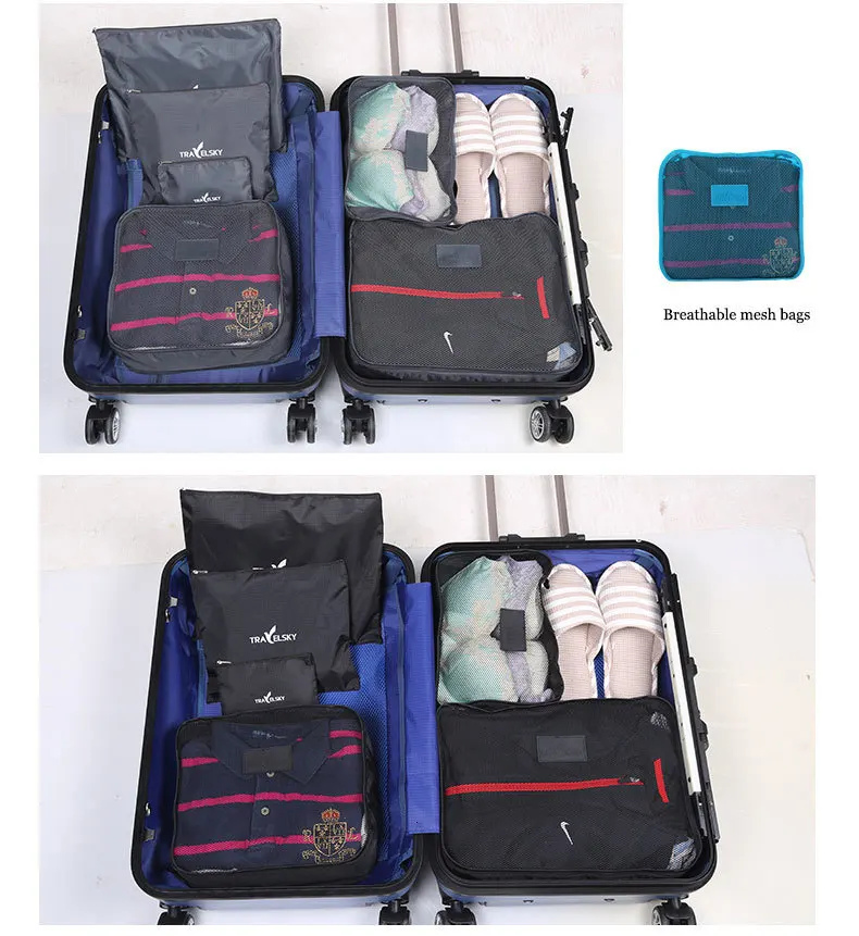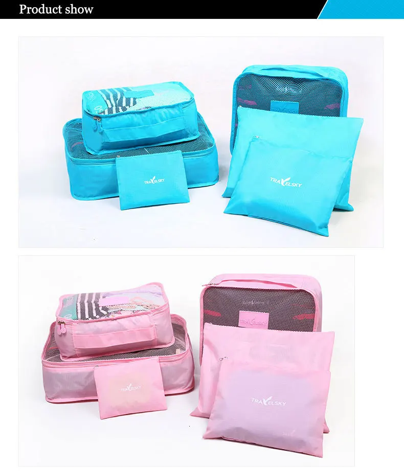 6 шт./компл., водонепроницаемая Женская дорожная сумка, органайзер, нейлоновая Сетчатая Сумка, Мужская упаковка, кубики, багажные дорожные сумки, одежда, обувь, сумка для хранения, быстрая доставка