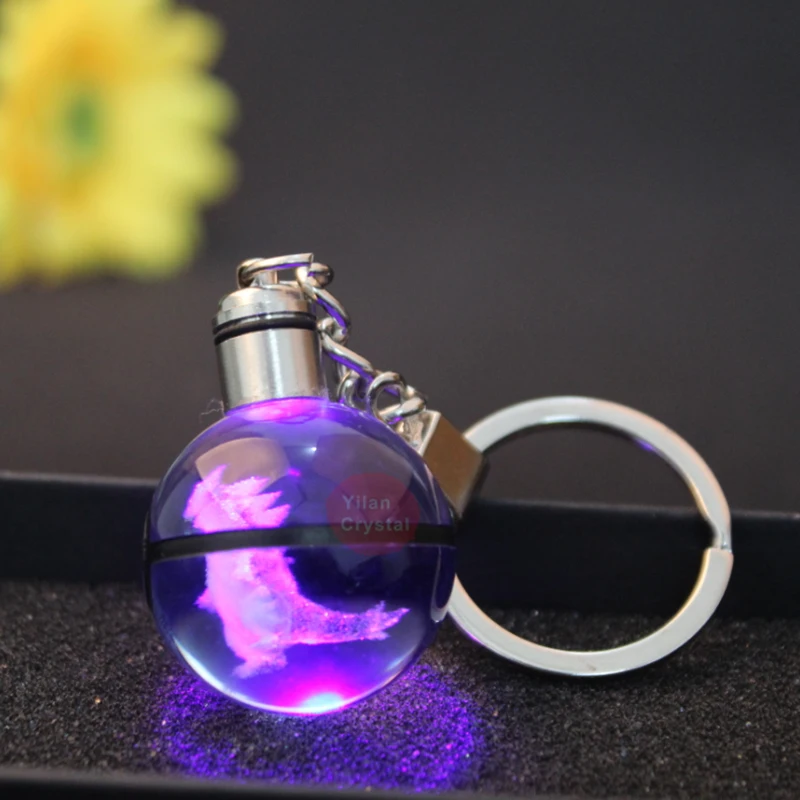 New Shape Customized Image LED Crystal Keychain Pokemon Ball Keychain For Gift