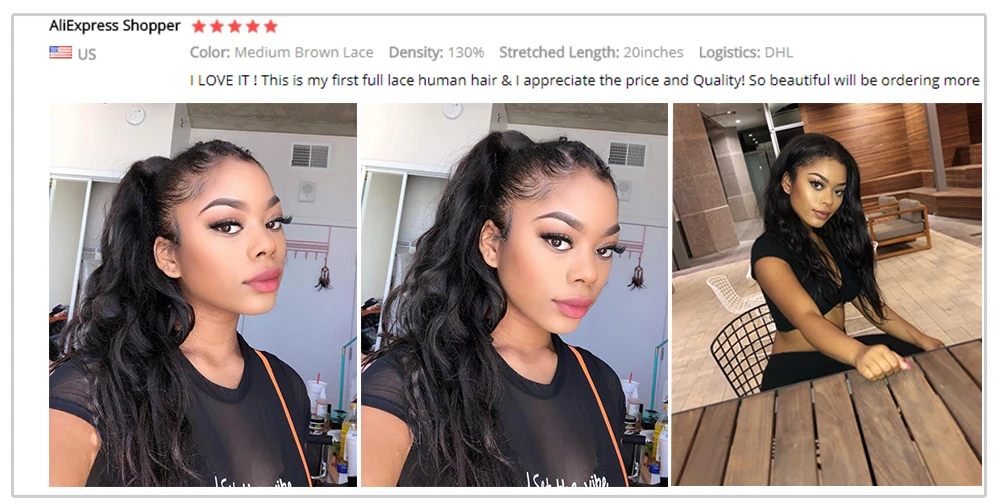 Тип парика: полный кружевной парик Плотность: 150%, 180%, 250% Текстура: объемная волна Цвет кружева: Средний коричневый Цвет: натуральный черный цвет, можно покрасить Длина: 14 " - 28" Доставка: DHL/Fedex, быстрая доставка