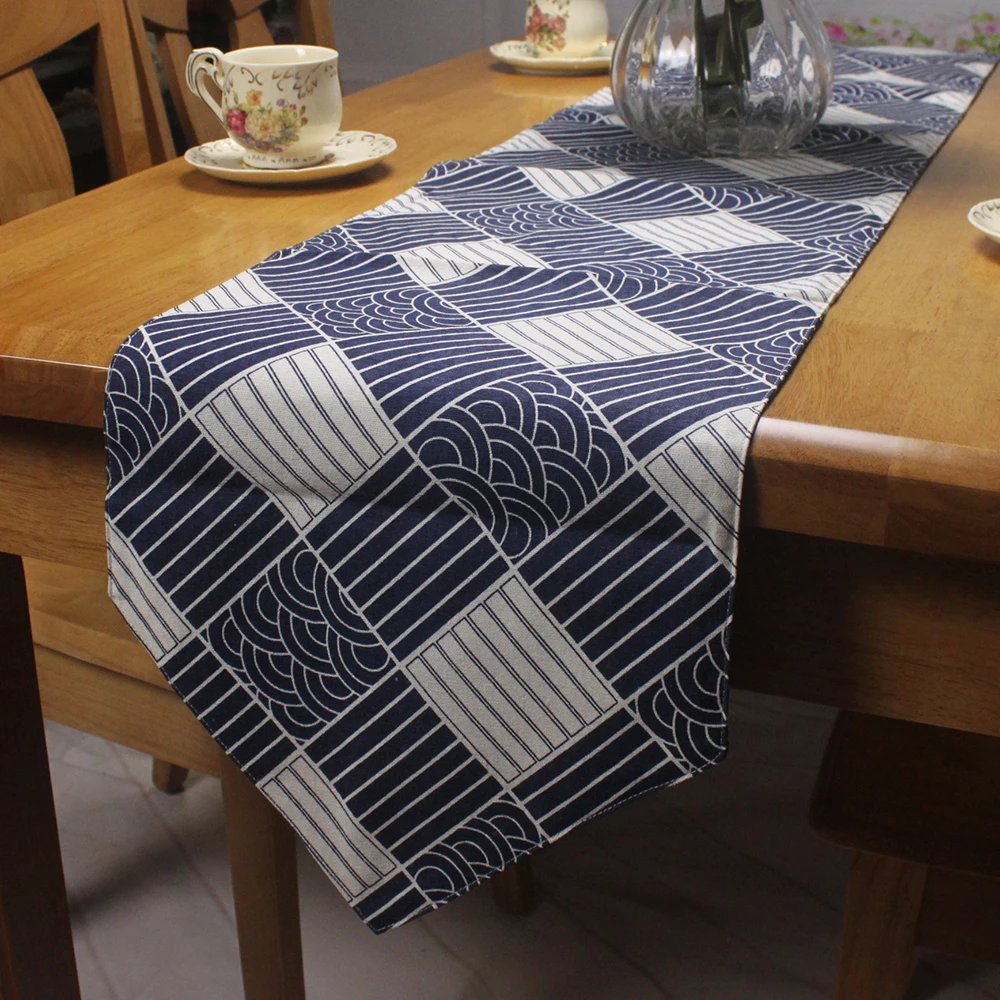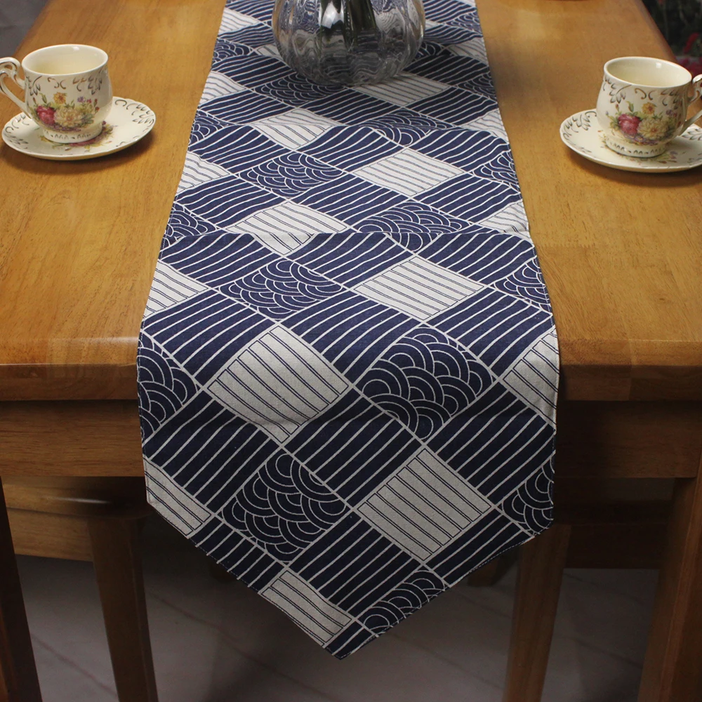 CURCYA классический японский традиционный стиль Настольный бегун Декор рыбья чешуя/морская волна/клетчатый рисунок Печатный Linene настольный бегун s