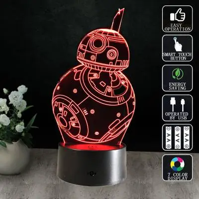 Не только стереоскопическое 3D освещение, но и показывает ваш Красочный световой эффект, кнопка переключения для управления цветом света, семь цветов и один градиентный цвет для выбора просто нажмите кнопку включения на базе ABS