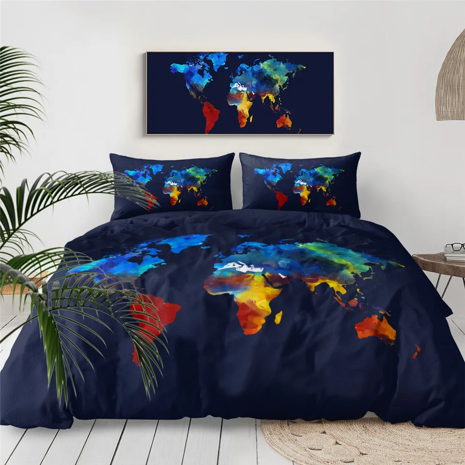 Постельное белье Outlet карта мира Комплект постельного белья с ярким принтом синяя