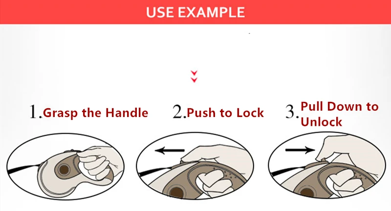 Пауза или блокировка Управляется только большим пальцем, выступающий переключатель на верхней части выдвижного поводка может быть быстро нажат большим пальцем для паузы или блокировки, одной рукой управления, свободной другой рукой.