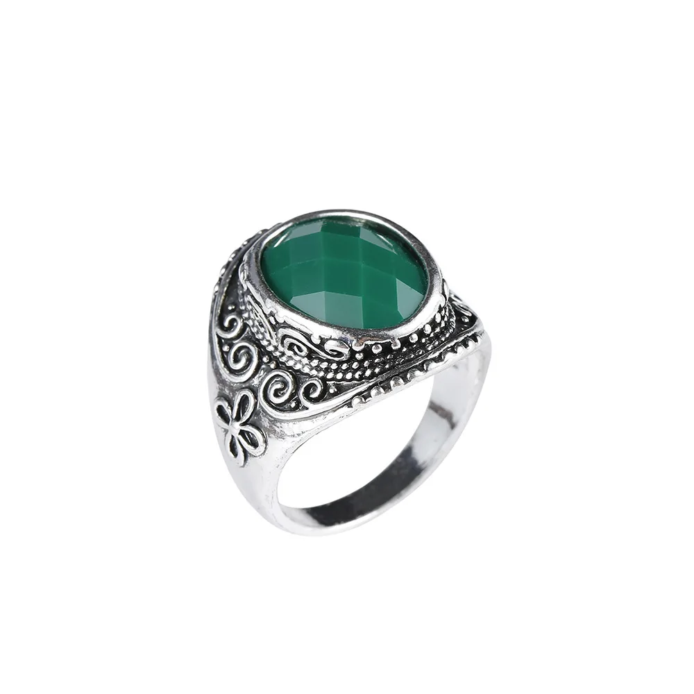 Brokenstone Black/Blue/Red/Green Stone Antique Engraved men ring