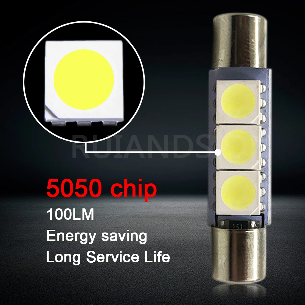 10 шт. x Гирлянда теплый белый лед синий цвет 3 SMD 5050 солнцезащитный козырек косметическое зеркало предохранитель 31 мм 6641 6614 Автомобильный светодиодный светильник лампа 12 В