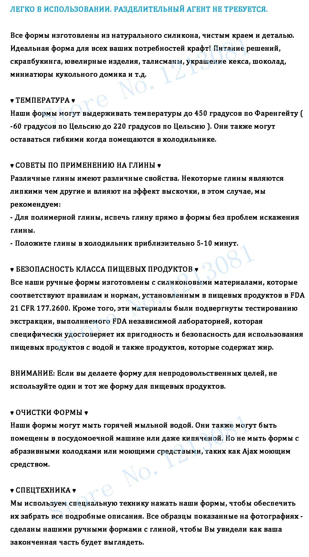 Все наши гибкие формы ручной работы изготовлены с силиконовыми материалами, которые соответствуют правилам, изложенным в пищевых продуктах и администрация по наркотикам в УЛХ 21 cfr 177.2600. Кроме того, эти материалы были подвергнуты испытаниям на добычу, которые были одобрены УЛХ и независимой лабораторией, которая конкретно удостоверяет их подходит для использования с водой на основе воды, а также с продуктами, которые содержат жир.