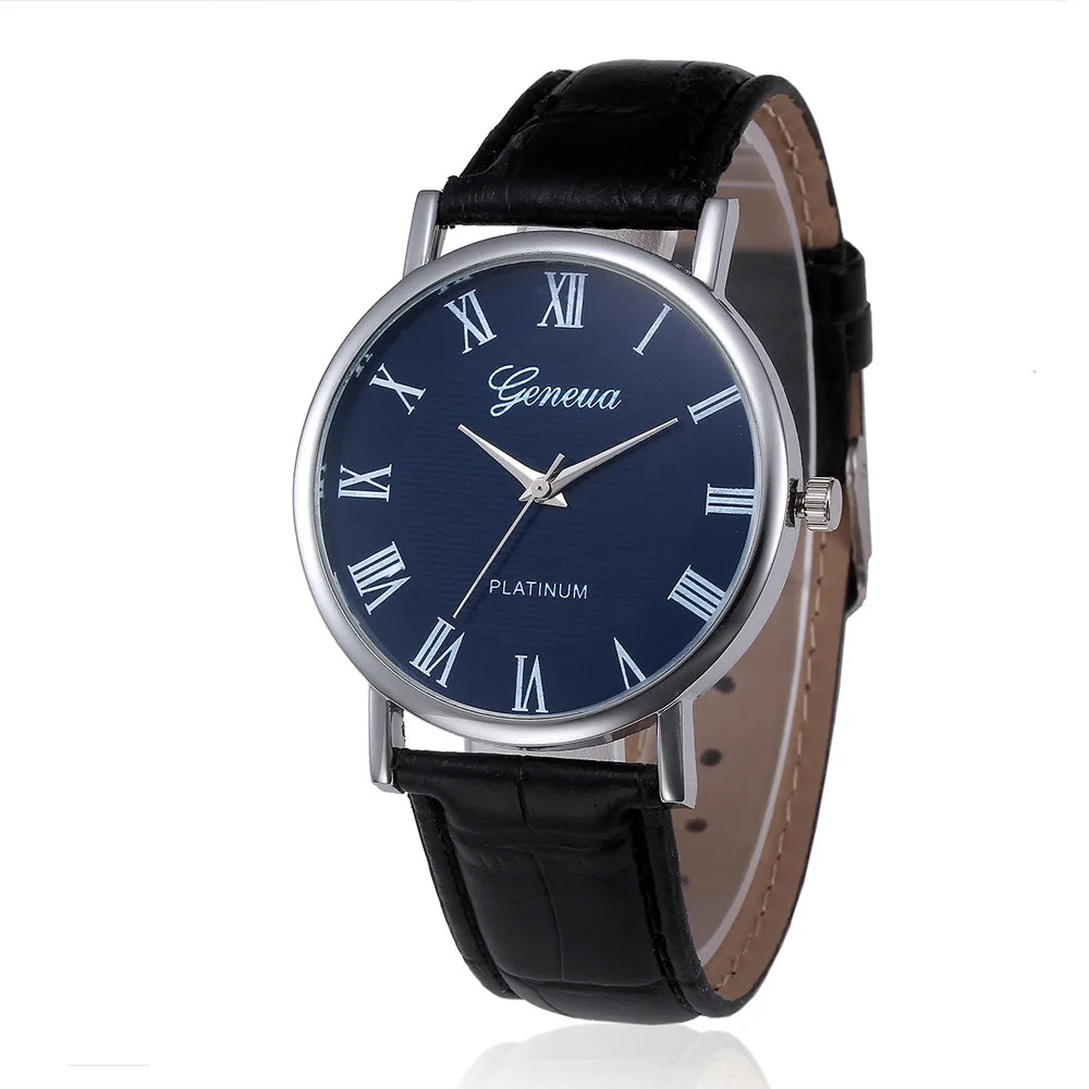 Ретро дизайн relogio masculino кожаный ремешок Аналоговый сплав кварцевые наручные часы Женева коричневый черный мужские часы классические saat erkekler
