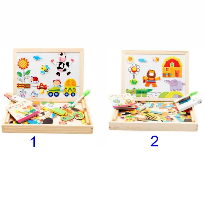 Детские пазлы Детские мольберт доска для рисования обучающая магнитная головоломка ферма джунгли животные деревянные игрушки FJ88