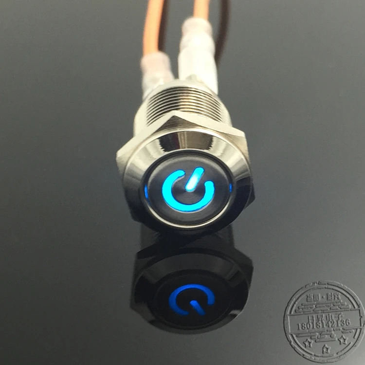 12 мм плоская головка самоблокирующийся Тип источника питания, символ с лампой, металлический кнопочный переключатель, выключатель питанияЛенточная лампа с плоской головкой, цветКрасный, зеленый, синий, желтый, белыйТри цвета на выбор!