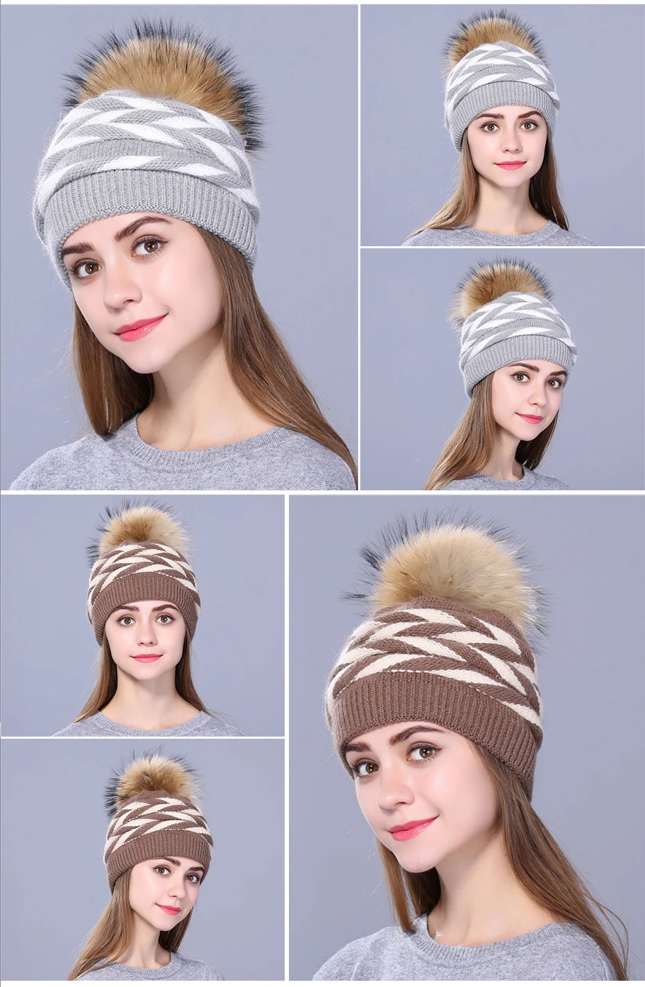 Xthree вязаная женская шапка с помпоном из натурального кроличьего меха |