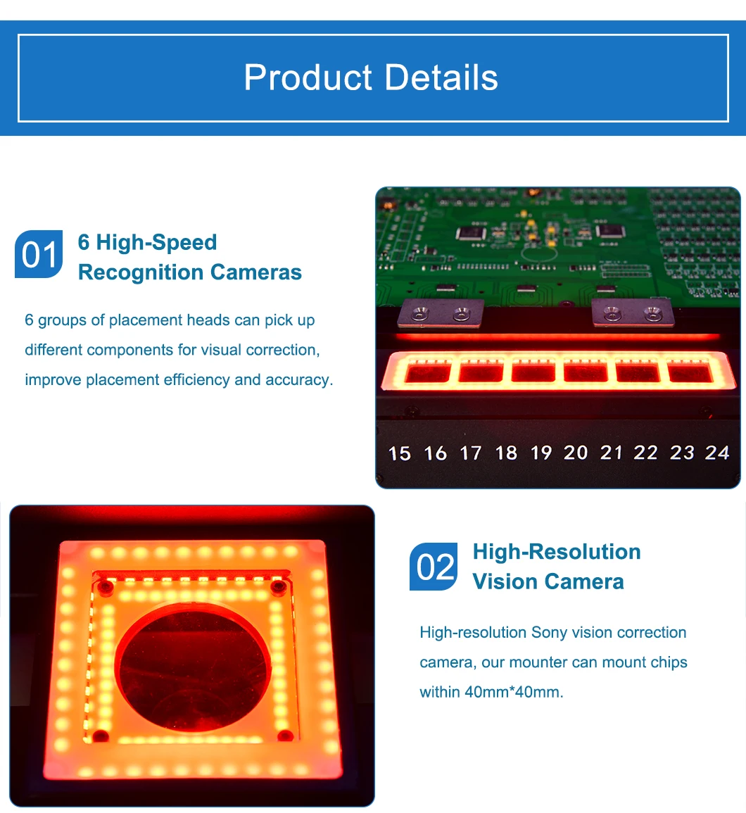 Машина SMT660 с 6 головками + 8 камерой + конвейером + 64 питателями + Серводвигатель Panasonic + прямой направляющий рельс + шлифовальный станок.