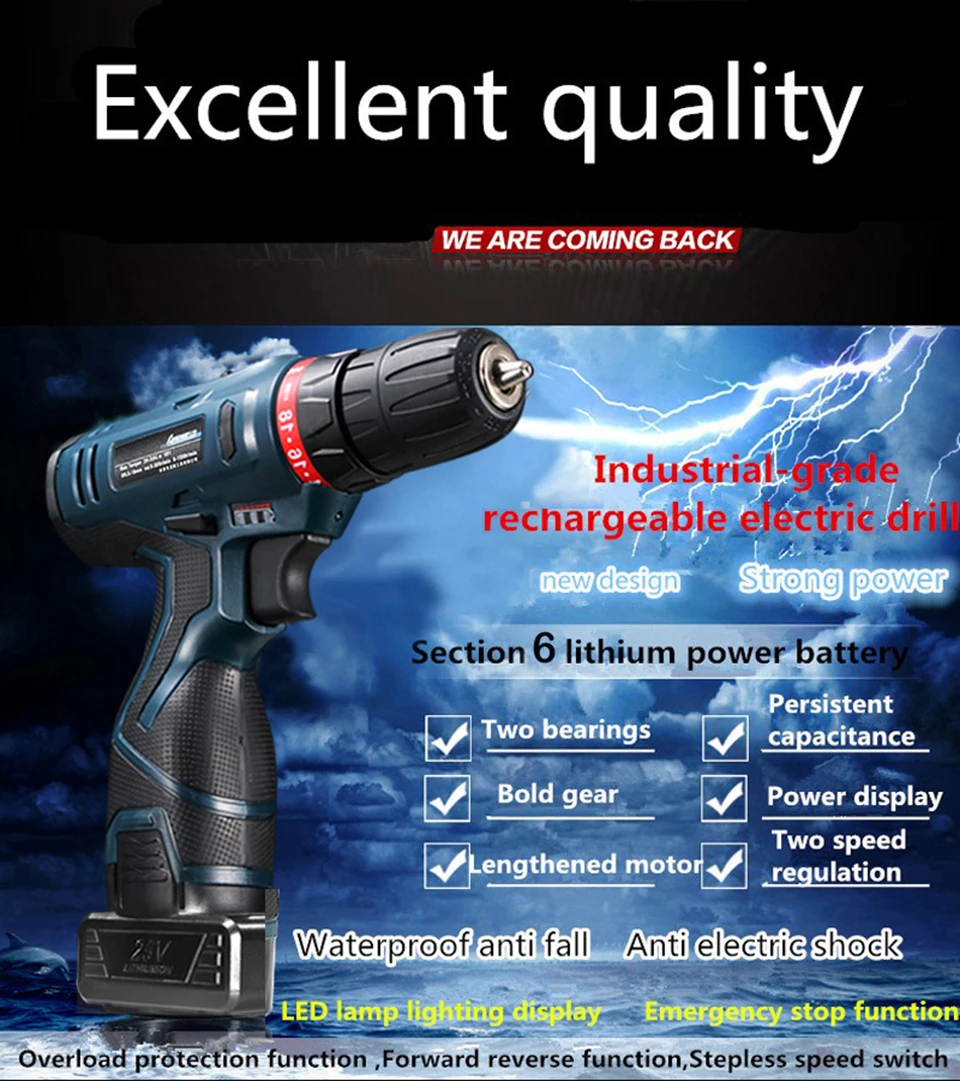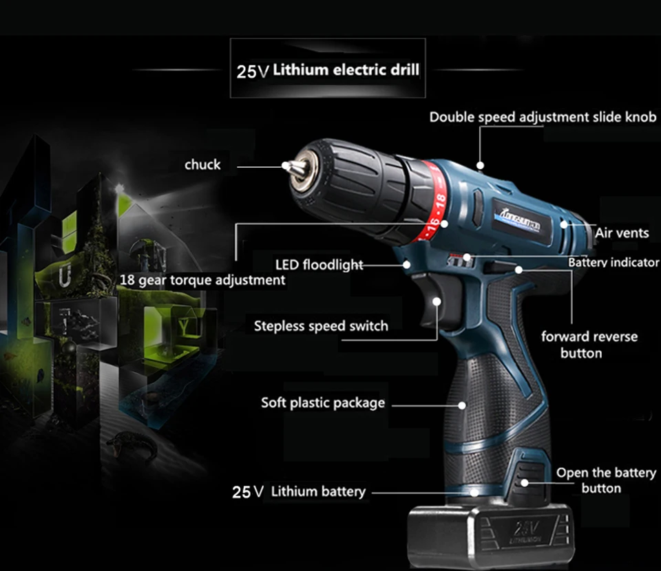 21 в литий ионная аккумуляторная электрическая дрель шуруповерт