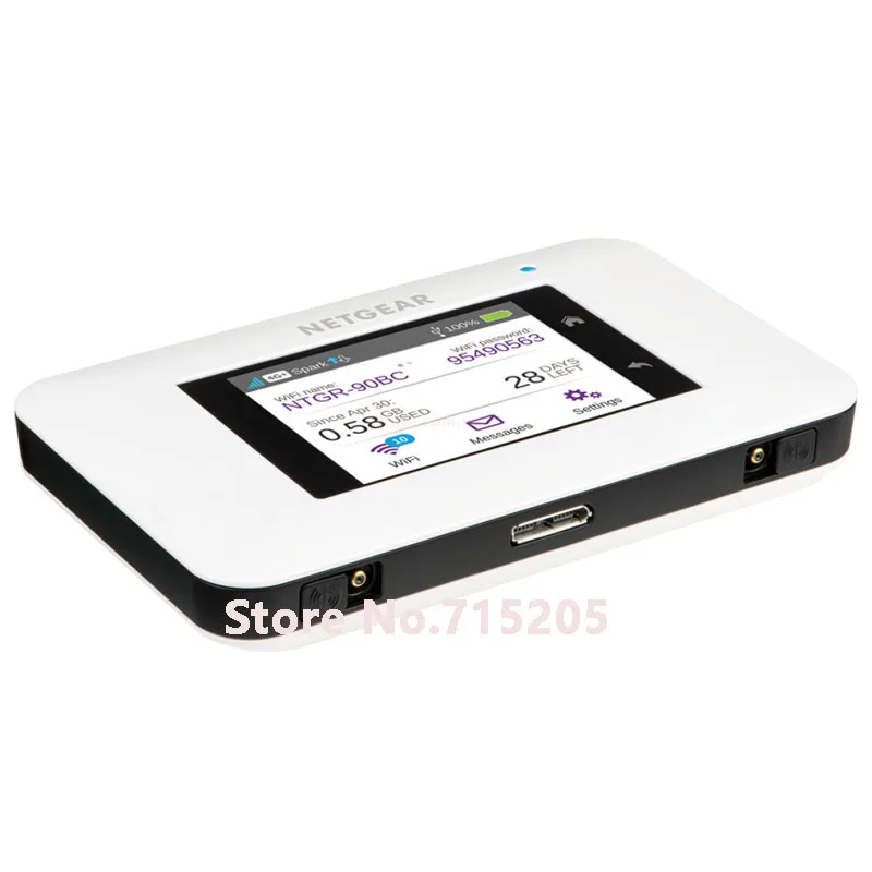Netgear AirCard 800S, Также известный как Optus 4G Wi-Fi модем (Cat 9) AC800S, новый 4 аппарат не привязан к оператору сотовой связи категория 9 Мобильная компиляция java-приложений! С 3-полосный технология carrier aggregation позволяющую достичь теоретические скорости загрузки 450 Мбит/с. Netgear AC800S имеет 2,4 "QVGA емкостный ЖК-дисплей сенсорного экрана и съемный аккумулятор 2930 мА/ч, который может продлиться до 11 часов непрерывного использования и других смартфонов или портативный USB-устройств.