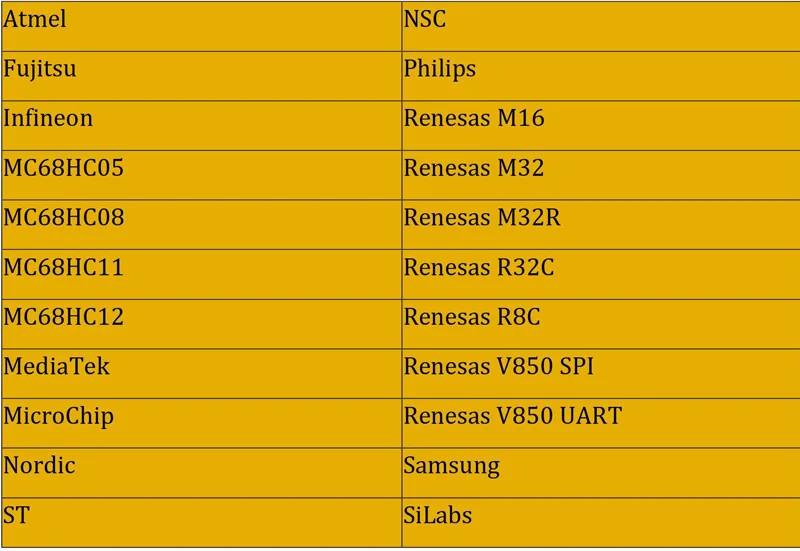 2. Поддерживает общие ECU/MCU/EEPROM крупных производителей, с более чем 1200 моделями продуктов, и постоянно обновляется.