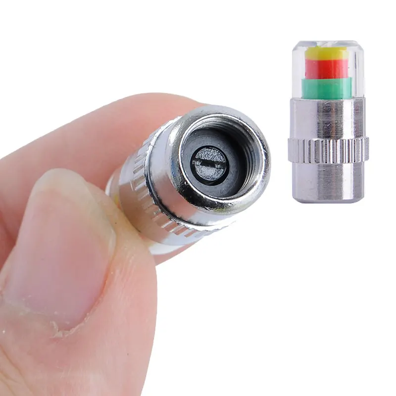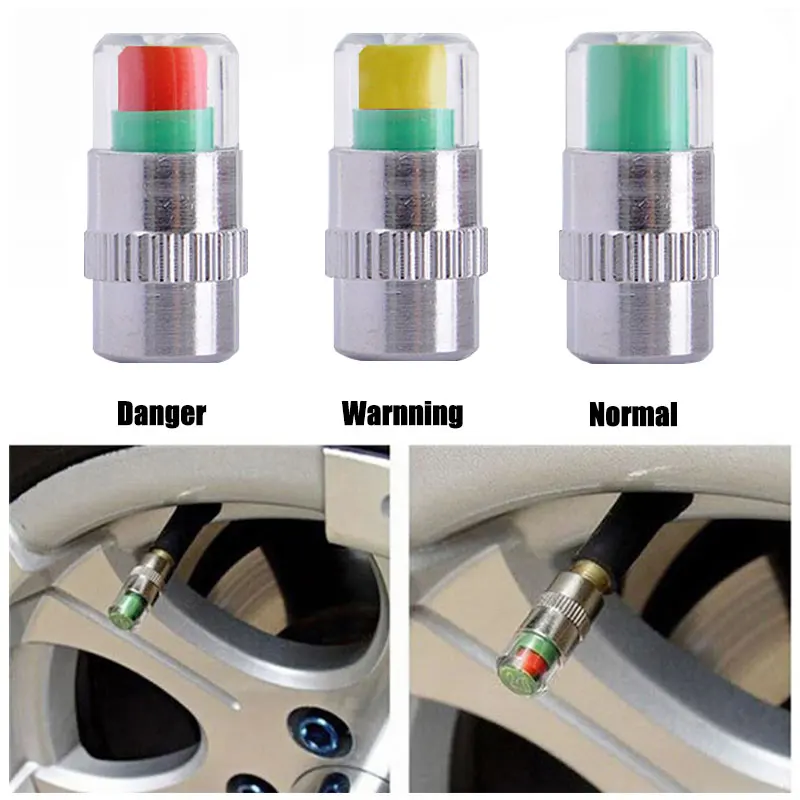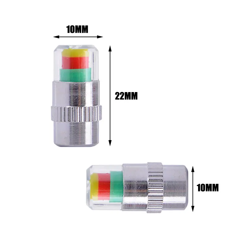 Подходит для любого стандартного размера, имеющегося штока клапана шины Визуально оповещает вас, когда давление в шинах низкое, чтобы помочь избежать преждевременного износа шин или обдува от надутых шин. Материал: хромированный металл Круглый Стиль: (2 бар) (2 бар)