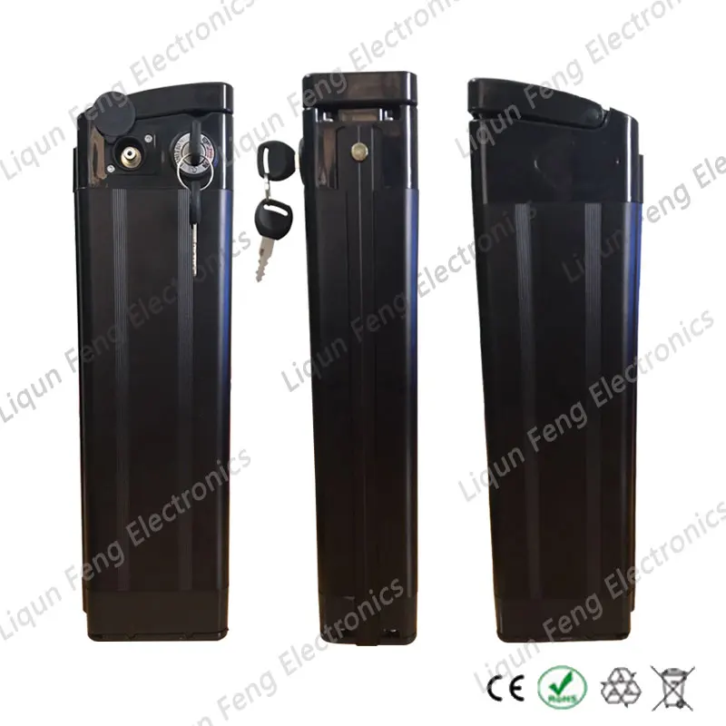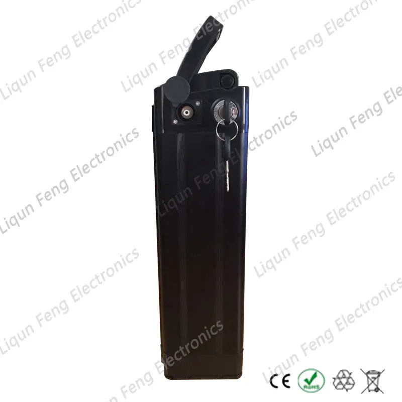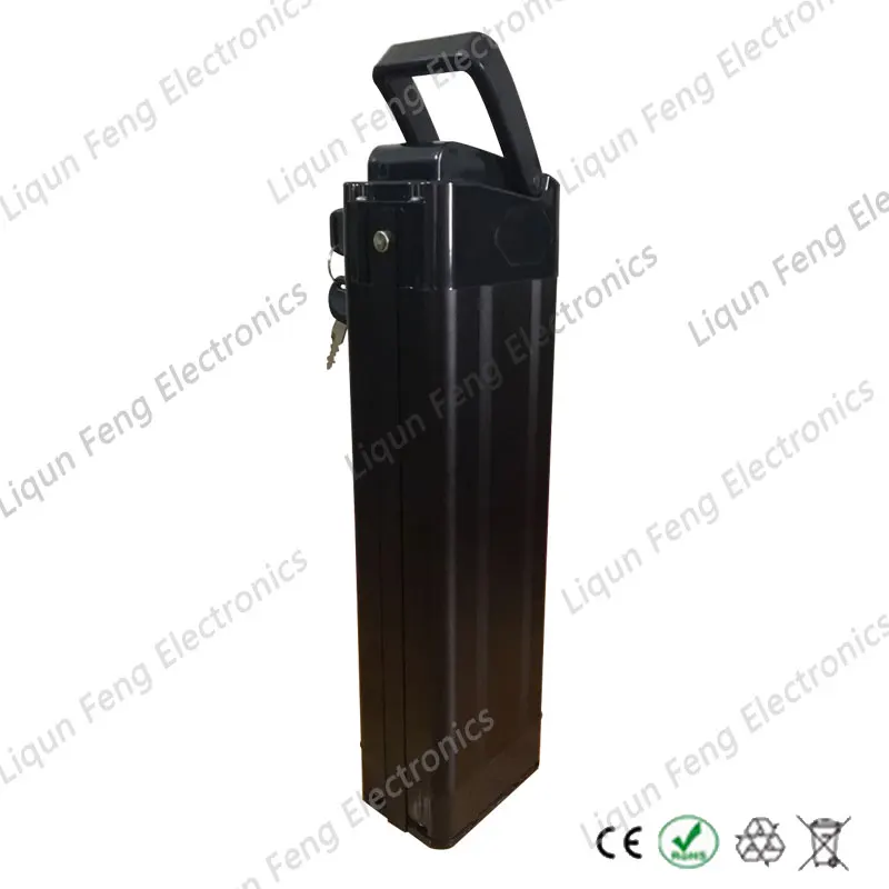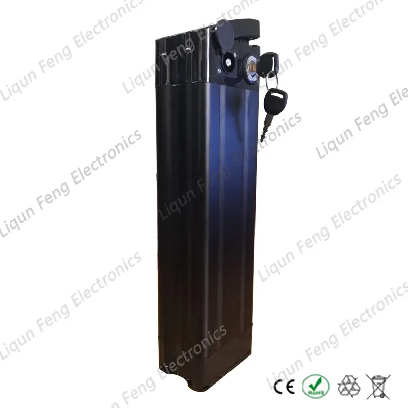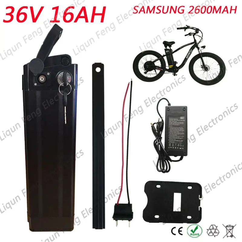 Bottom Discharge Port 36V 16AH 500W Silver Fish 36V 15AH E-Bike battery use SAMSUNG Cell with Aluminum Case 2A charger 15A BMS.