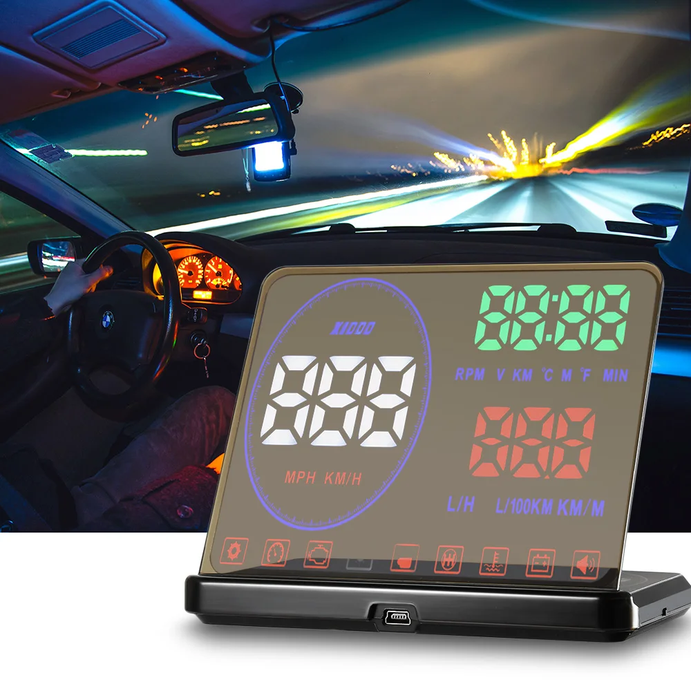 M9 5,5 дюймов HD экран HUD OBD II Дисплей на лобовом стекле многоцветная Предупреждение