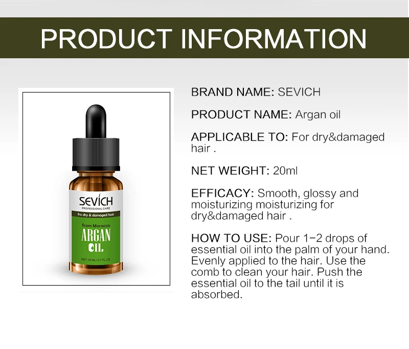 Sevich кератин марокканское аргановое масло 20 мл увлажняющая сухая поврежденная пряжа для ухода за волосами Лечение маска для волос