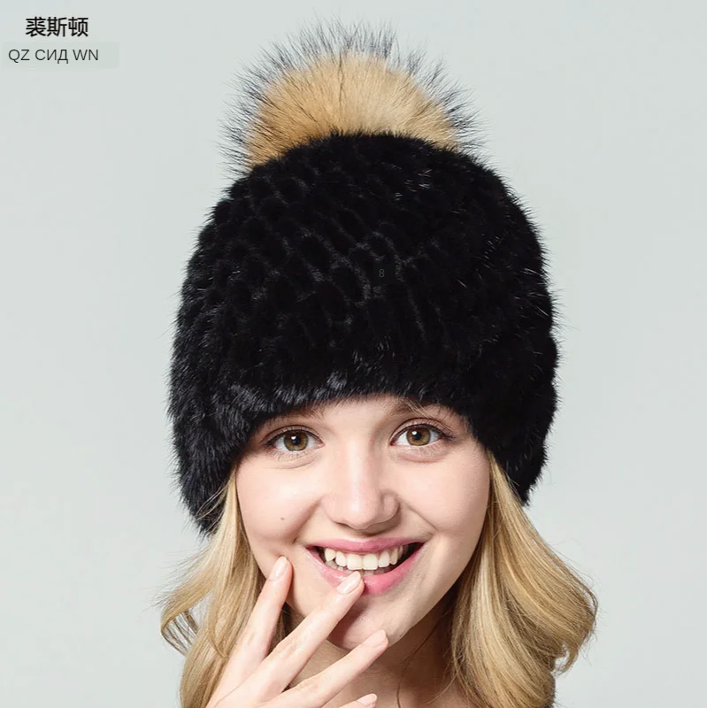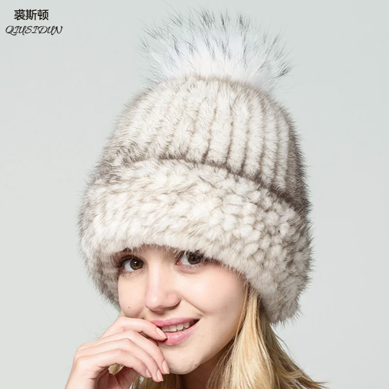 Qiusidun натуральный мех норки вязаные шапки Мода...
