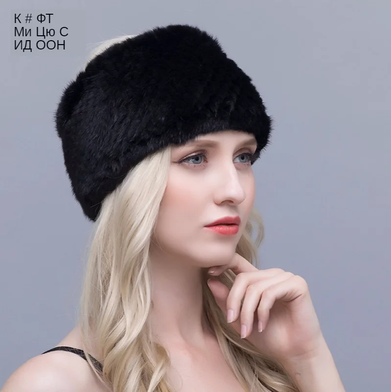 Настоящие норковые вязаные меховые шапки модные эластичные...